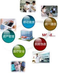 智慧医疗解决方案 智慧医疗包括多业务统一通信、人员资产管理、移动查房、院前急救、医疗安全管理以及院外恢复监控等。