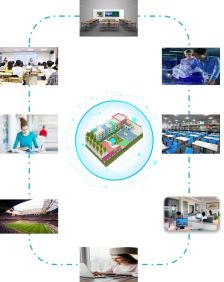 智慧校园解决方案 随着校园智慧化、泛在化的深入发展,新的校园建设涵盖了教师及行政办公区、智慧教室、多媒体室、实验室、学生宿舍、学生活动中心、食堂、图书馆和运动场馆等各类信息空间。
