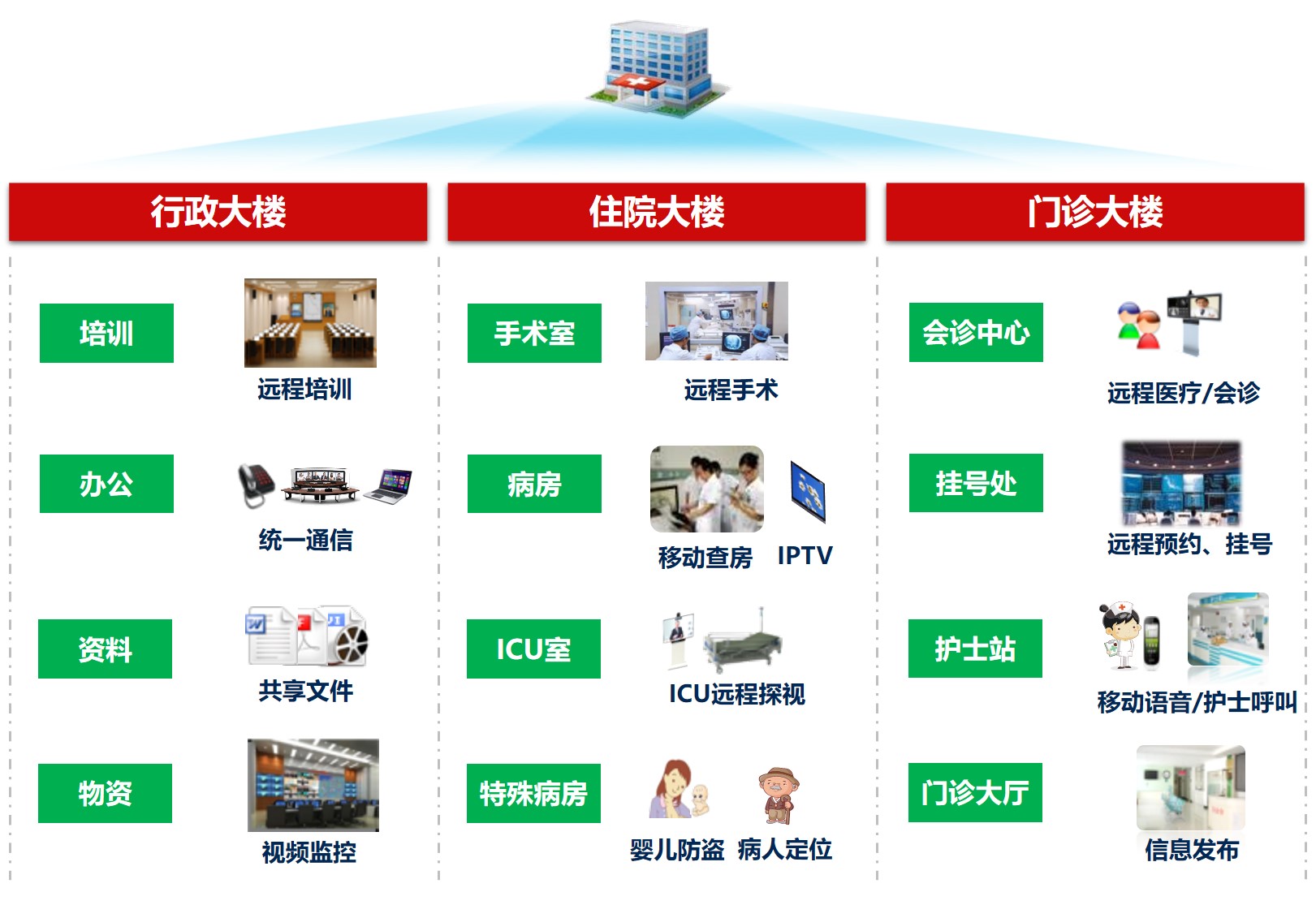 实现医院网络无死角全覆盖、全连接,统一承载语音、视频、数据等多项业务;