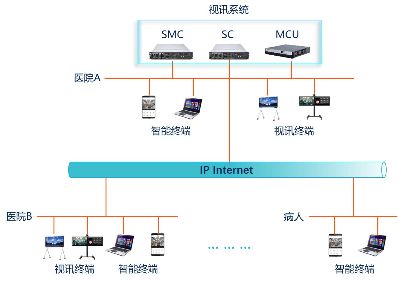 为手术室、接诊室、专家室、会诊中心、ICU病房等部署业界领先的视音频系统,实现高清智真的远程沟通和会诊。
